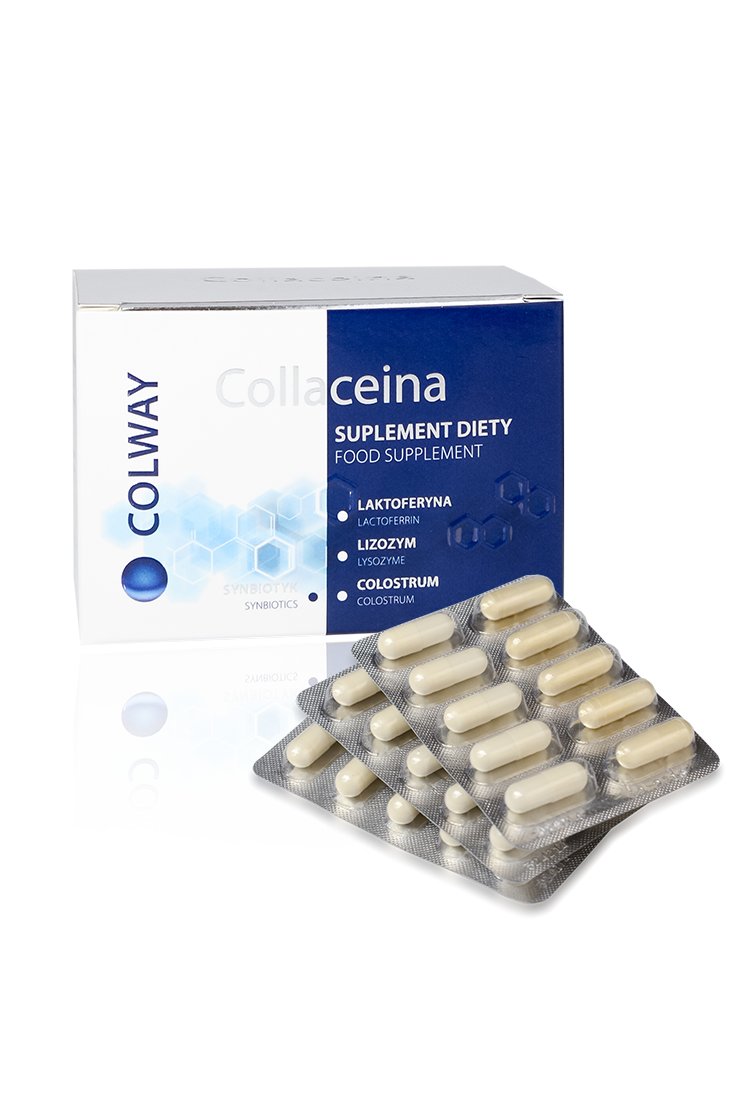 Innowacyjność, odkrywanie doskonałości w naturze wpisane są w wartości Colway i inspirują nas do wprowadzania na rynek unikalnych produktów. Dostęp do najnowszych osiągnięć nauki, sprawił, że przedstawiamy Wam dziś Collaceinę – nowoczesny i niespotykany na rynku suplement diety. Składa się on z trzech naturalnych antybiotyków jakimi są colostrum, laktoferyna oraz lizozym – esencja życia prosto z natury. Laktoferyna (LF) to białko znajdujące się w mleku ssaków, dzielny obrońca życia noworodków, których układ immunologiczny tuż po urodzeniu nie funkcjonuje w pełni sprawnie; skutecznie chroni dzieci przed bakteriami, grzybami, wirusami, patogenami i innymi mikroorganizmami.Lizozym jest jedną z najcenniejszych substancji, jaką spotykamy w suplementacji. Trzeba stosować go długo i cierpliwie, bo działa bardzo powoli, ale jednocześnie jest tak silny, że w stanie oczyszczonym wykazuje ponadprzeciętną aktywność przeciwbakteryjną. Trzecim wyjątkowym składnikiem Collaceiny jest colostrum czyli siara - pierwszy dar matki, który wytwarza jej ciało, broniąc dziecko przed światem pełnym niebezpiecznych drobnoustrojów. Cud biologii, jakim jest siara ssaków może być suplementem naszej diety, a substancje w niej zawarte pomagają zwalczać infekcje bakteryjne i wirusowe, alergie i niemal wszystkie choroby związane z systemem immunologicznym. Colostrum jest prawdziwym ratunkiem dla grupy osób, które cierpią z powodu zbyt częstych infekcji bakteryjnych i wirusowych. Składnikiem Collaceiny jest colostrum klasy „0”, najwyżej jakości, takie, z których wytwarzane są najnowsze leki. Jego aktywność biologiczna i właściwości uodporniające są największe z dostępnie możliwych.