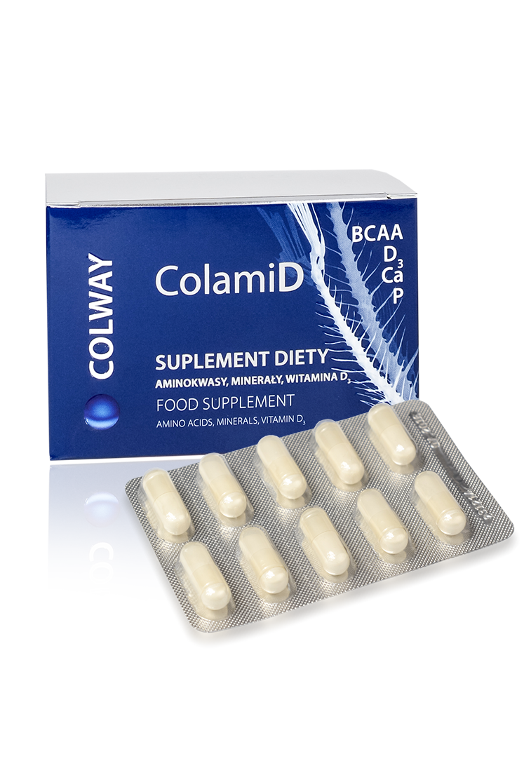 Do powstania suplementu ColamiD zainspirowała nas prostota i bogactwo naturalnego składnika, jakim są ości rybie. Gwarantując najwyższą jakość suplementu, surowiec wykorzystany do jego produkcji legitymuje się najwyższymi certyfikatami czystości mikrobiologicznej i odpowiada wysokim normom europejskim. By wzmocnić działanie naturalnych bogactw ColamiD uzupełniliśmy Witaminą D₃, która wspomaga absorpcję wapnia i fosforu, pierwiastków niezwykle ważnych dla pracy naszego organizmu. Utrzymanie optymalnego poziomu Witaminy D₃ wzmocni Twój układ kostny, rozwój kośćca Twoich dzieci, zwiększa stabilność układu odpornościowego i obniża ryzyko występowania infekcji, chorób nowotworowych i cukrzycy. Witaminę D w składzie ColamiD-u, będącą pod postacią cholecalciferolu, pozyskano z lanoliny z wełny owczej , która wchłania się o 70% lepiej, niż jej roślinne odpowiedniki. Dbaj o siebie i swoich bliskich czerpiąc z natury, to, co w niej najlepsze.
